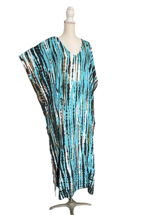 Aqua & Brown/White Waterfall Tie Dye Muumuu/Kaftan